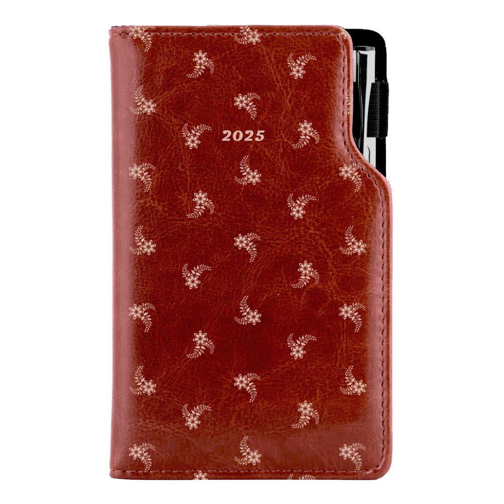 Diary DESIGN weekly pocket 2025 PL - brown - white flower
