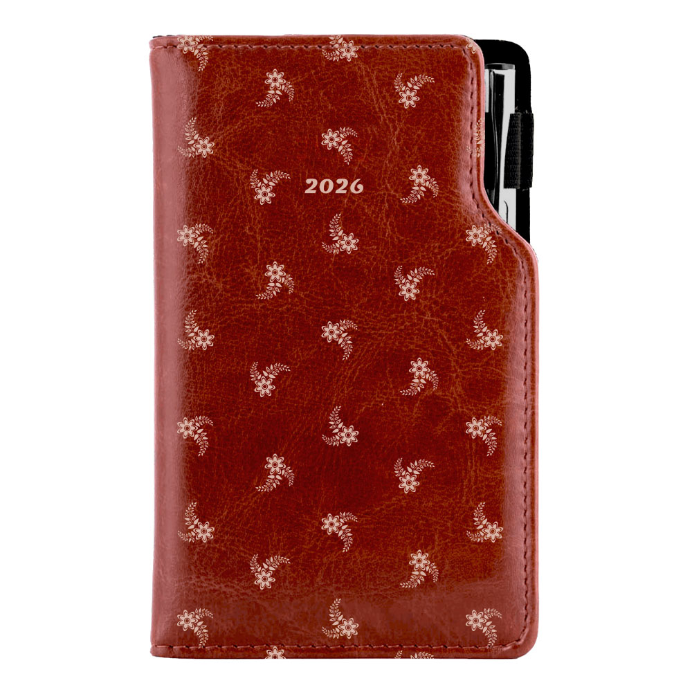 Diary DESIGN weekly pocket 2026 PL - brown - white flower