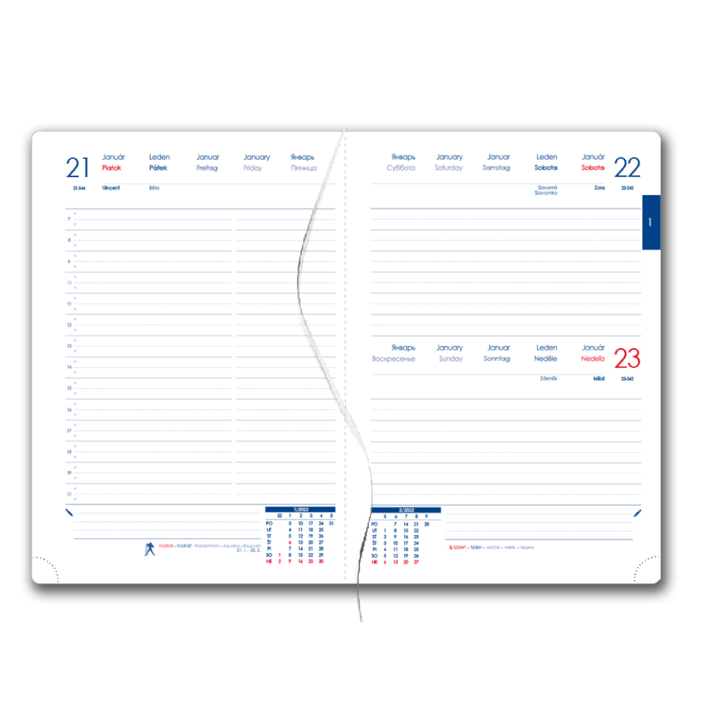 Diář je vhodný pro sleporažbu a barevnou ražbu.