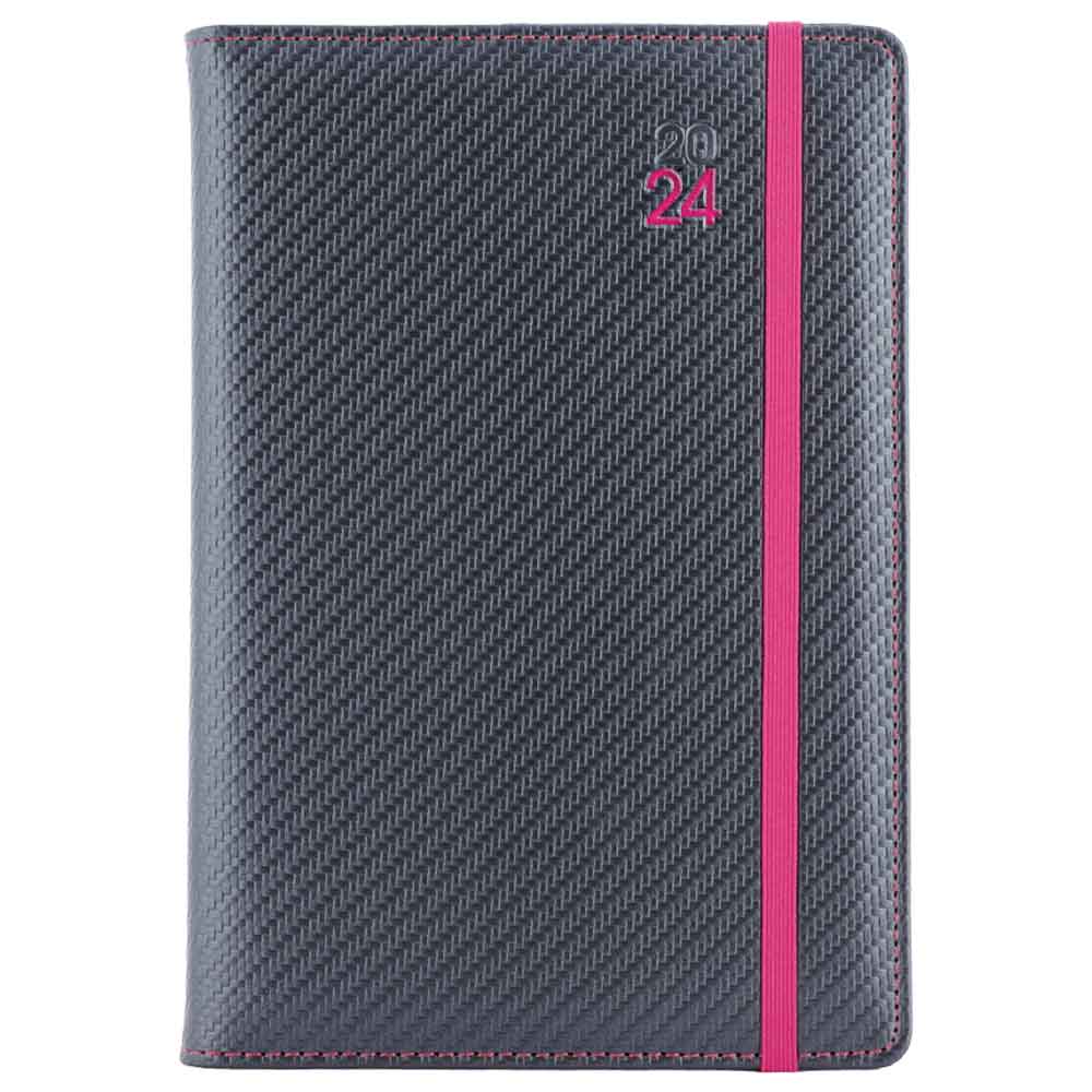 Diary ELASTIC daily B6 2024 Polish - grafit/magenta rubber band