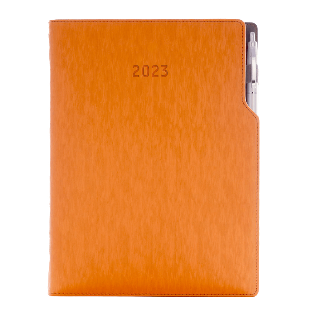 Diář je vhodný pro sleporažbu, ražbu přes folii nebo barevnou ražbu.