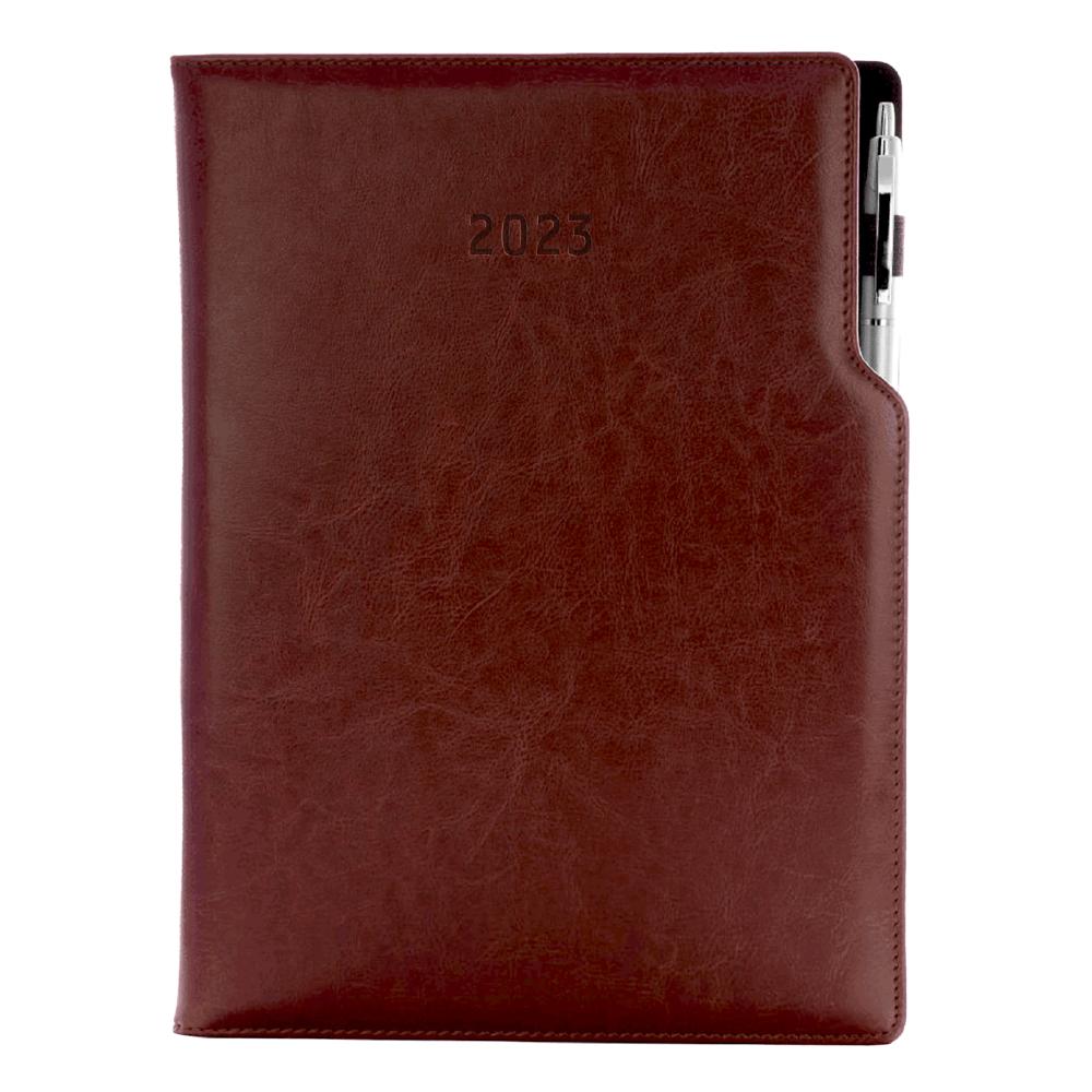 Diary GEP with ballpoint daily A4 2023 Polish - brown