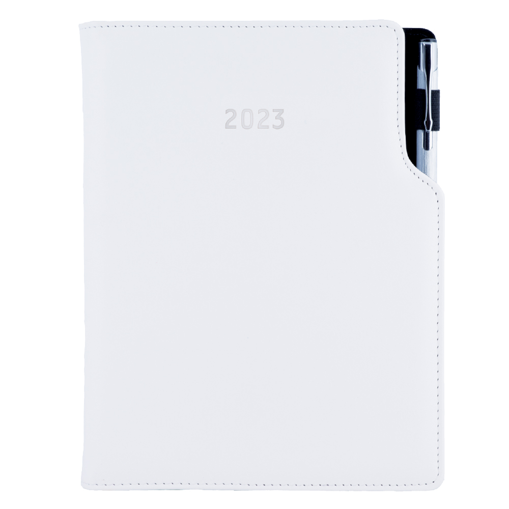Diary GEP with ballpoint daily A5 2023 Slovak - white/white stiching