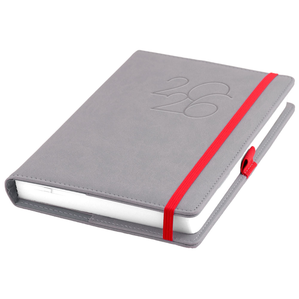Diary POLY daily A5 2026 Czech - grey/red rubber band