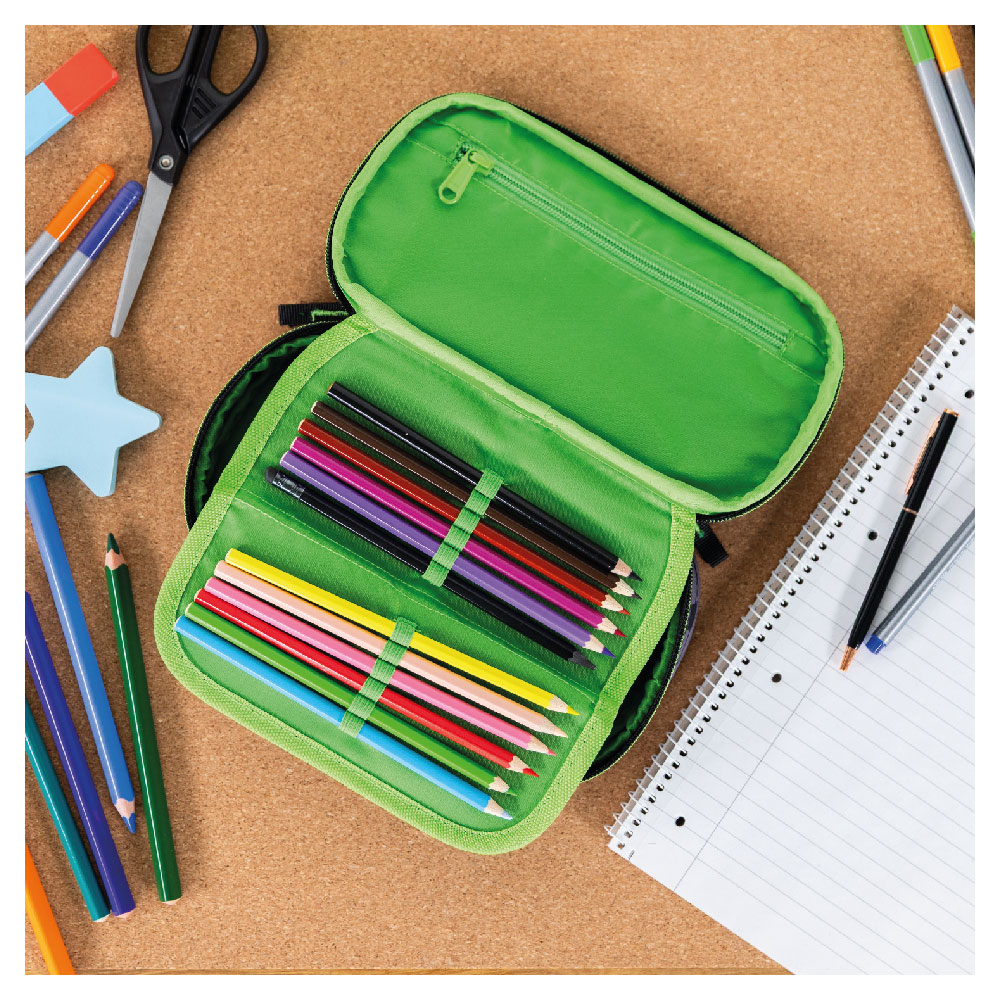 • Pevný školní penál s výklopnou vnitřní přepážkou.