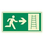 Ewakuacyjna drabina - kierunek w prawo - fotoluminescencyjny znak, płyta PVC 1 mm 200x100 mm