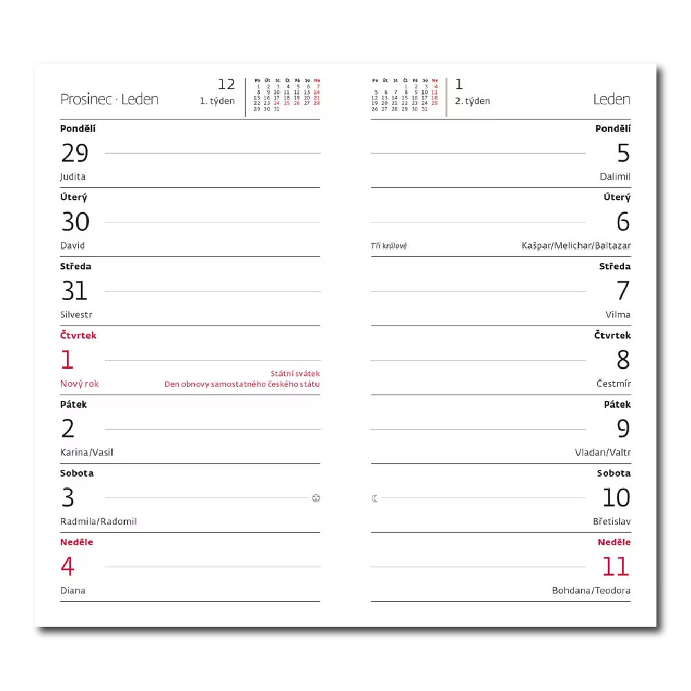 Rozměr: 8,5 x 15,4 cmKalendárium: české čtrnáctidenní jmennéPočet stran: 80 stranMateriál: lamino