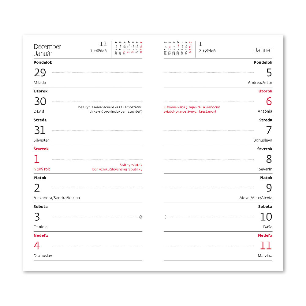 Rozměr: 8,5 x 15,4 cmKalendárium: slovenské čtrnáctidenní jmennéPočet stran: 80 Materiál: lamino