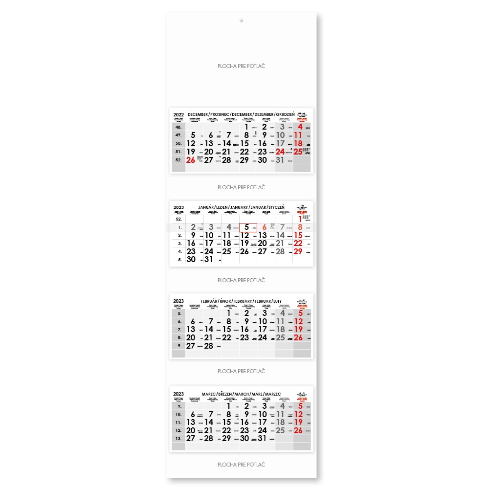 Fourmonths Wall Calendar Kvatro stacked Slovak 2023 - grey