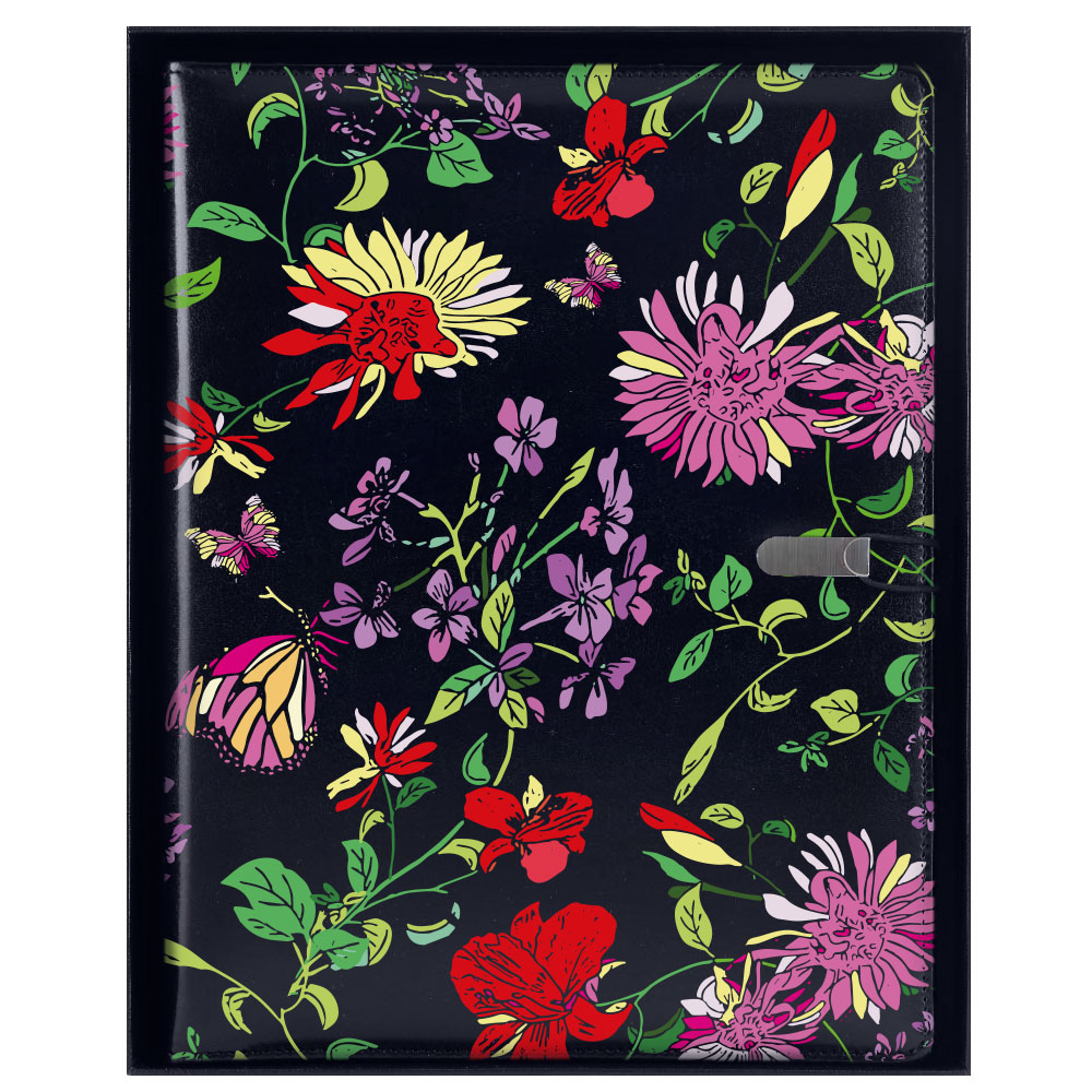 GEP konferenční desky na dokumenty v dárkové krabičce černé - květy s linkovaným blokem