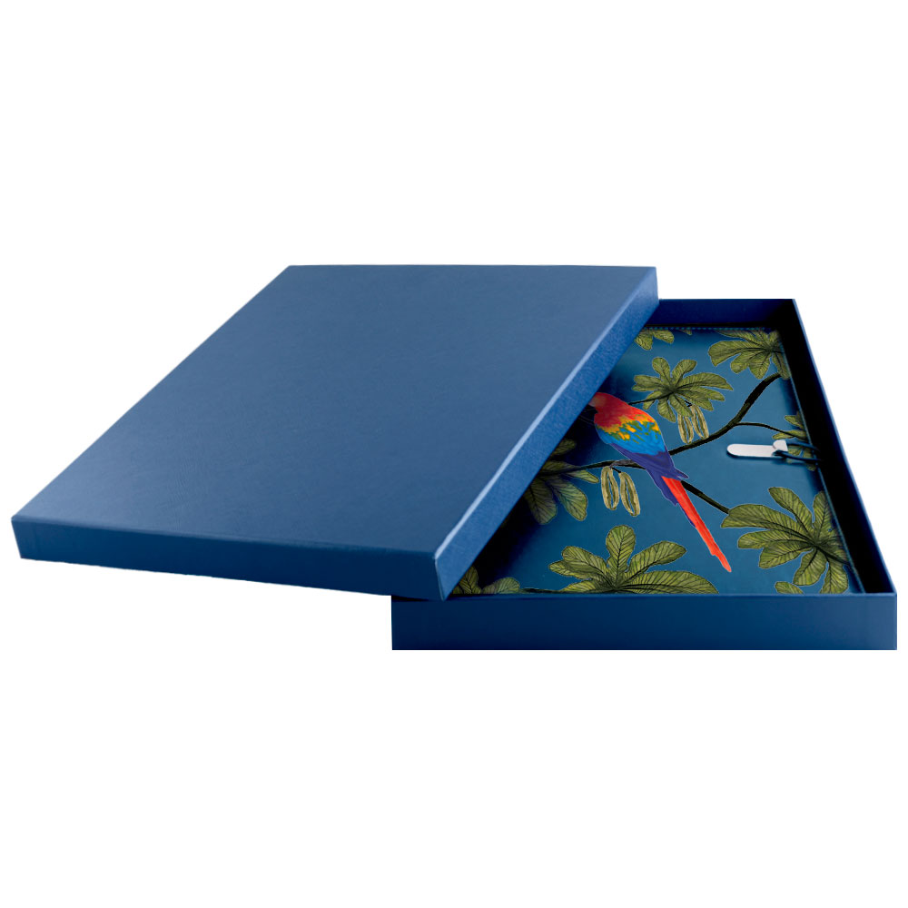 GEP DESIGN conference boards in a blue gift box - Parrot with a lined notebook