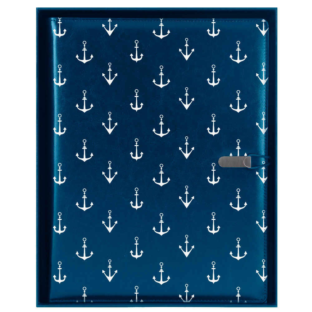 GEP konferenční desky na dokumenty v dárkové krabičce modré - námořník - kotvy s linkovaným blokem