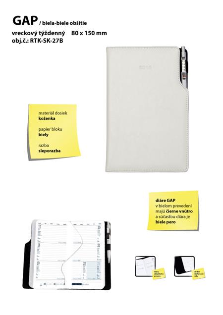 GEP kapesní slovenský diář 80x150 mm bílá - bílé obšití