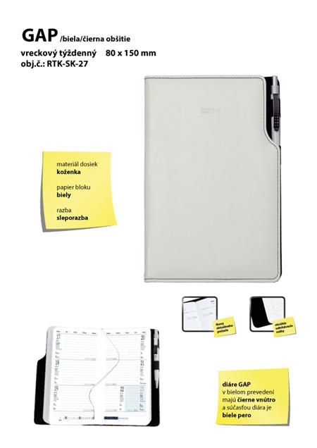 GEP kapesní slovenský diář 80x150 mm bílá - černé obšití