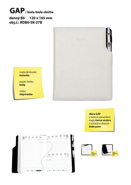 GEP slovenský denní diář B6 bílá - bílé obšití