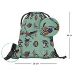 • Sáček na obuv či jiné volnočasové aktivity. • Sáček je vyroben z pevného omyvatelného materiálu. • Zdrhování pomocí pevných tkanic, které zároveň umožňují nošení na zádech.