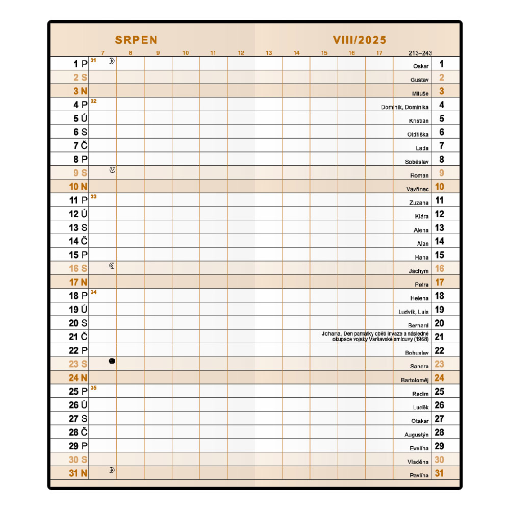 Kalendárium: měsíční české jmenné