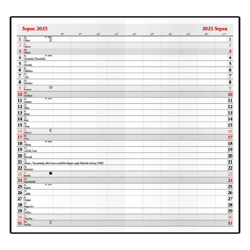 tabulkový kalendář  2025 a 2026, místo na poznámky,