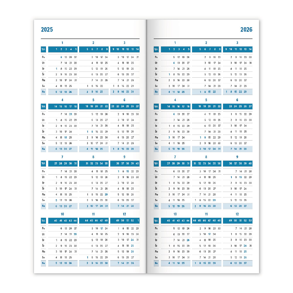 Diář obsahuje: přehledný kalendář 2025/2026/2025,