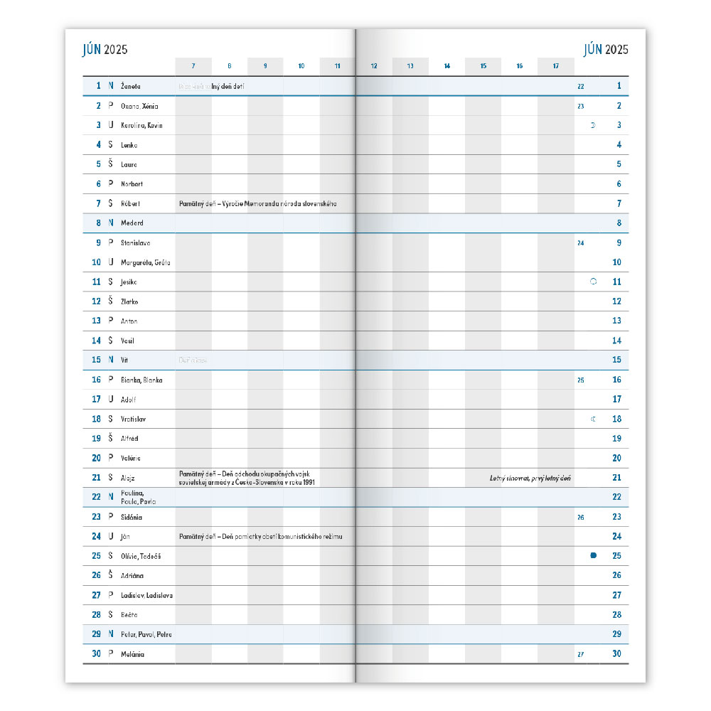 Diář obsahuje: přehledný kalendář 2025/2026/2025,