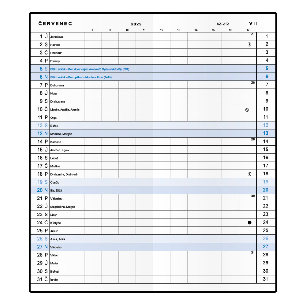 osobní záznamy, tabulkový kalendář 2025 a 2026,