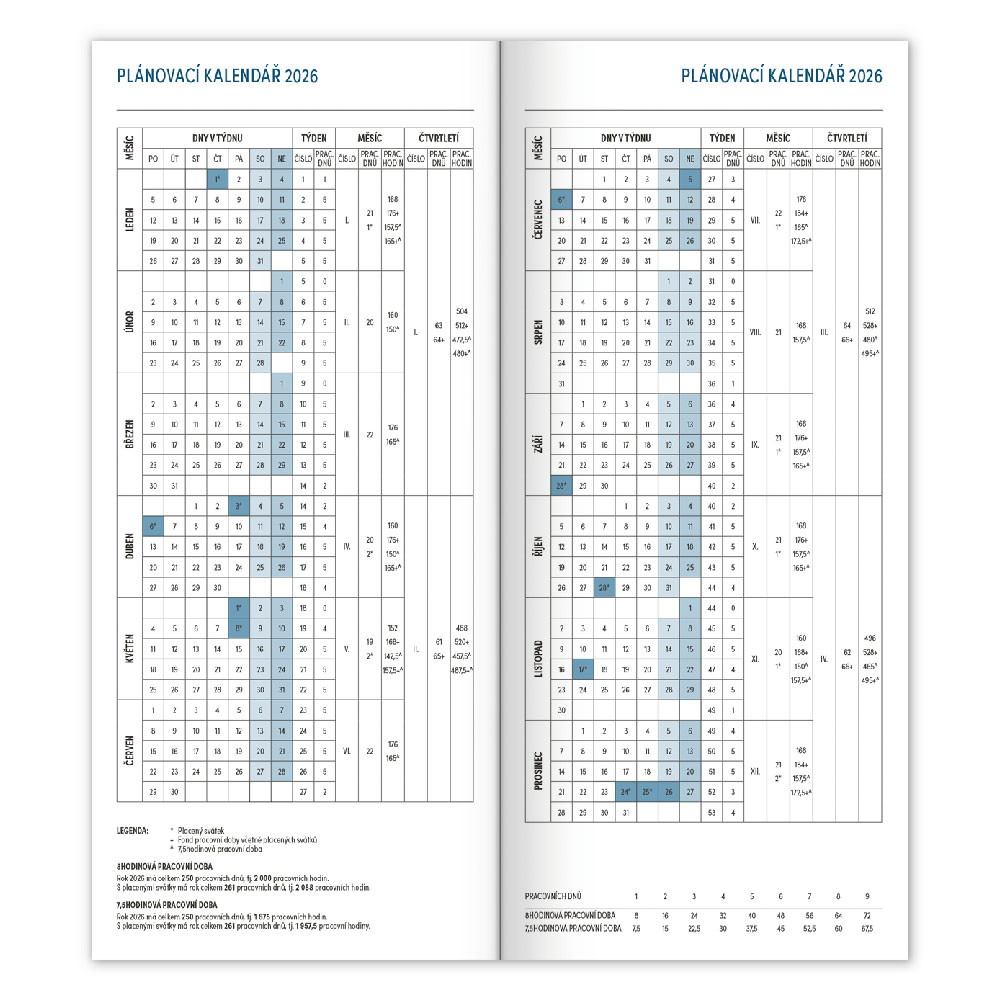 Diář obsahuje: přehledný kalendář 2026 a 2027,