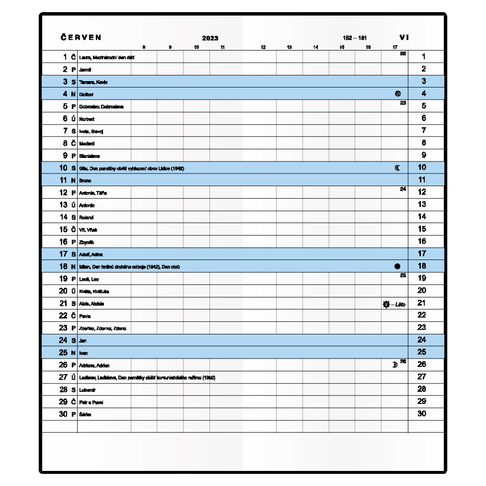 Kalendárium: měsíční české jmenné