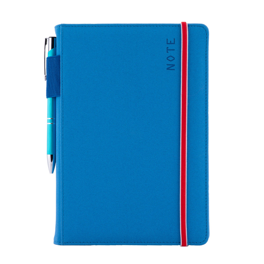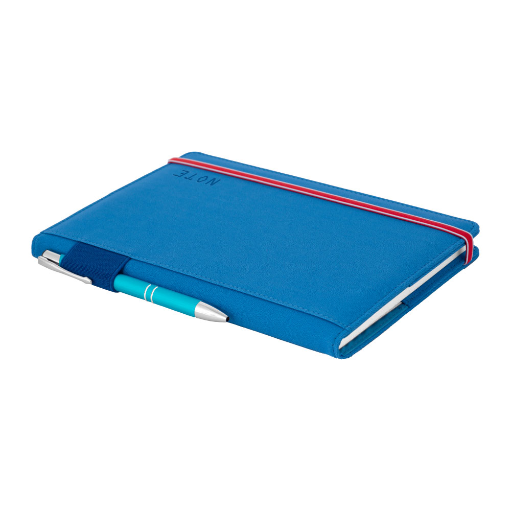 Součástí notesu je propiska a gumička na zavírání.