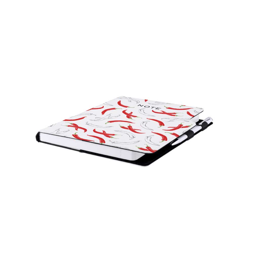 Das Notizbuch enthält eine Schlaufe für einen Stift und einen Metallstift