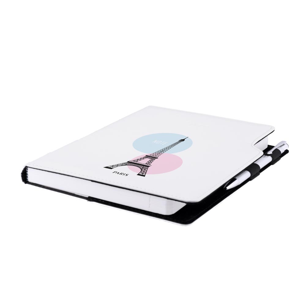 Das Notizbuch enthält eine Schlaufe für einen Stift und einen Metallstift