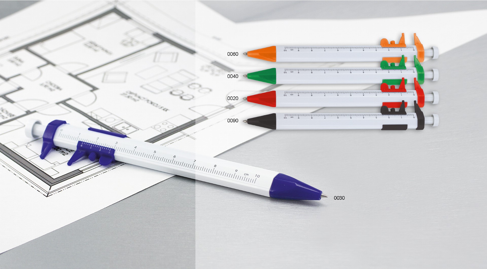 Plastové kuličkové pero s funkčním posuvným měřítkem