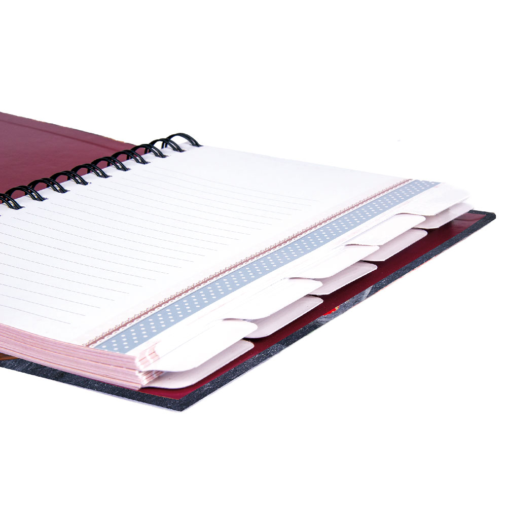 Vazba: kroužková vazba, pevné desky, mašlí připrevněná vařečka