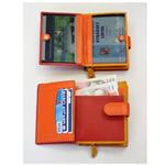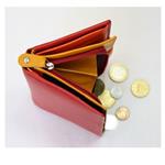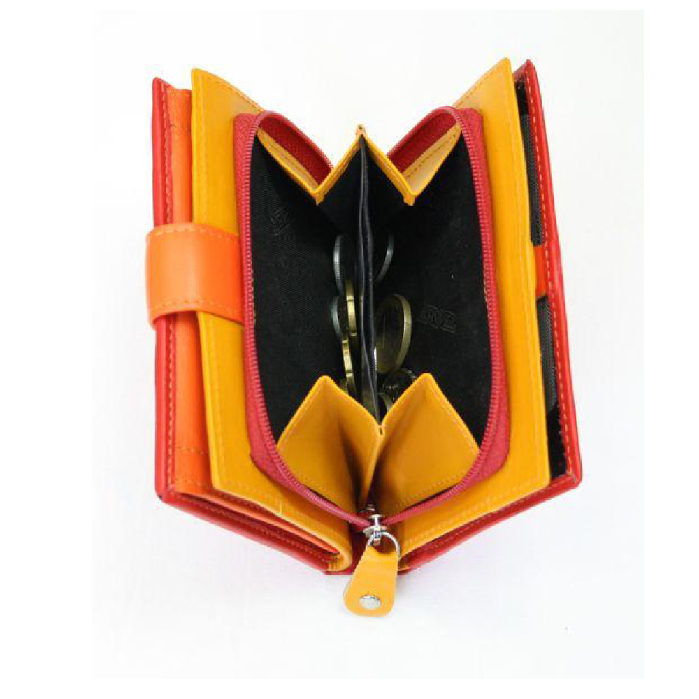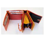 vnitřek peněženky složený z 3 odstínů - červené, oranžové a žluté,