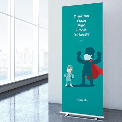Natahovací Roll Up banner - stříbrnýStojan pro banner přenosný a skládacíViditelná grafická plocha 800 x 2000 mmbalení obsahuje:Dvě otočné nohyKlik horní lištaPružný prut s fixní délkouVčetně tašky.