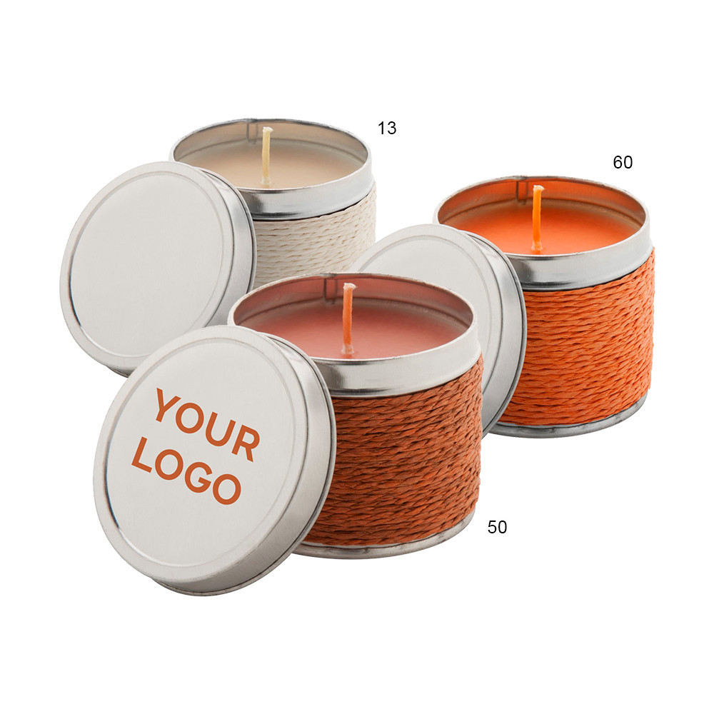 Vonná svíčka v kovové krabičce omotané provázkem