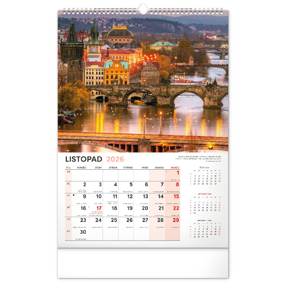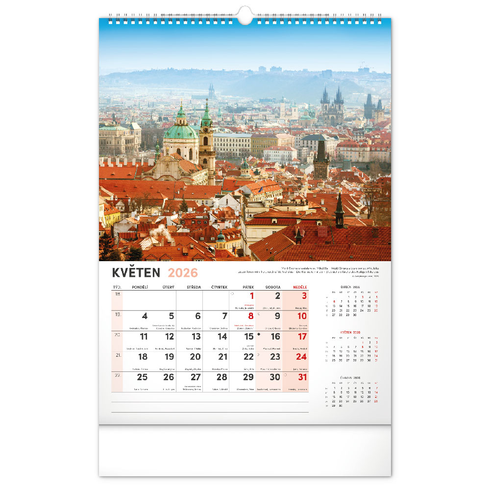 Rozmer: 33 x 46 cm Kalendárium: české Rozsah kalendára: 14 listov Väzba: dvojitá špirála Plocha pre potlač: 33 x 6 c
