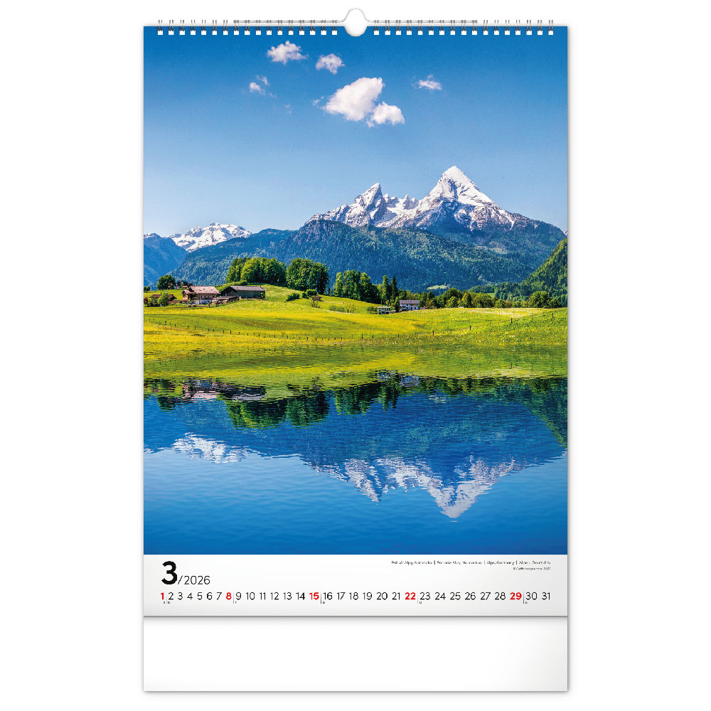 Rozměr: 33 x 46 cmKalendárium: neutrálníRozsah kalendáře: 14 listůVazba: dvojitá spirálaPlocha pro potisk: 33 x 6 cm