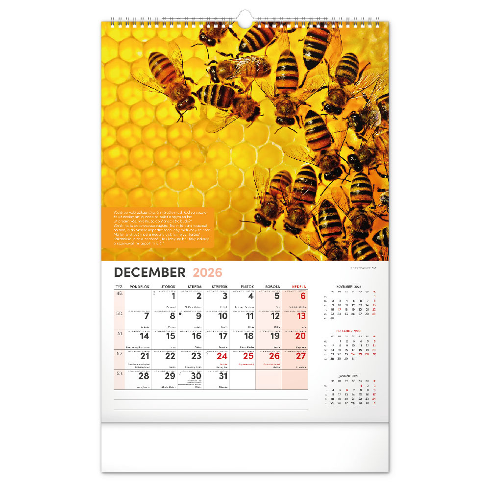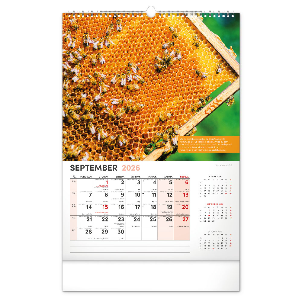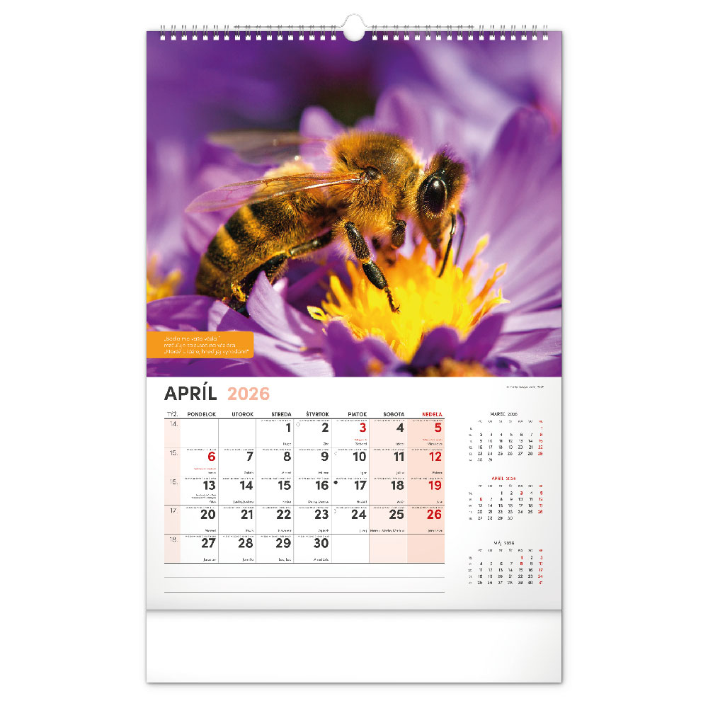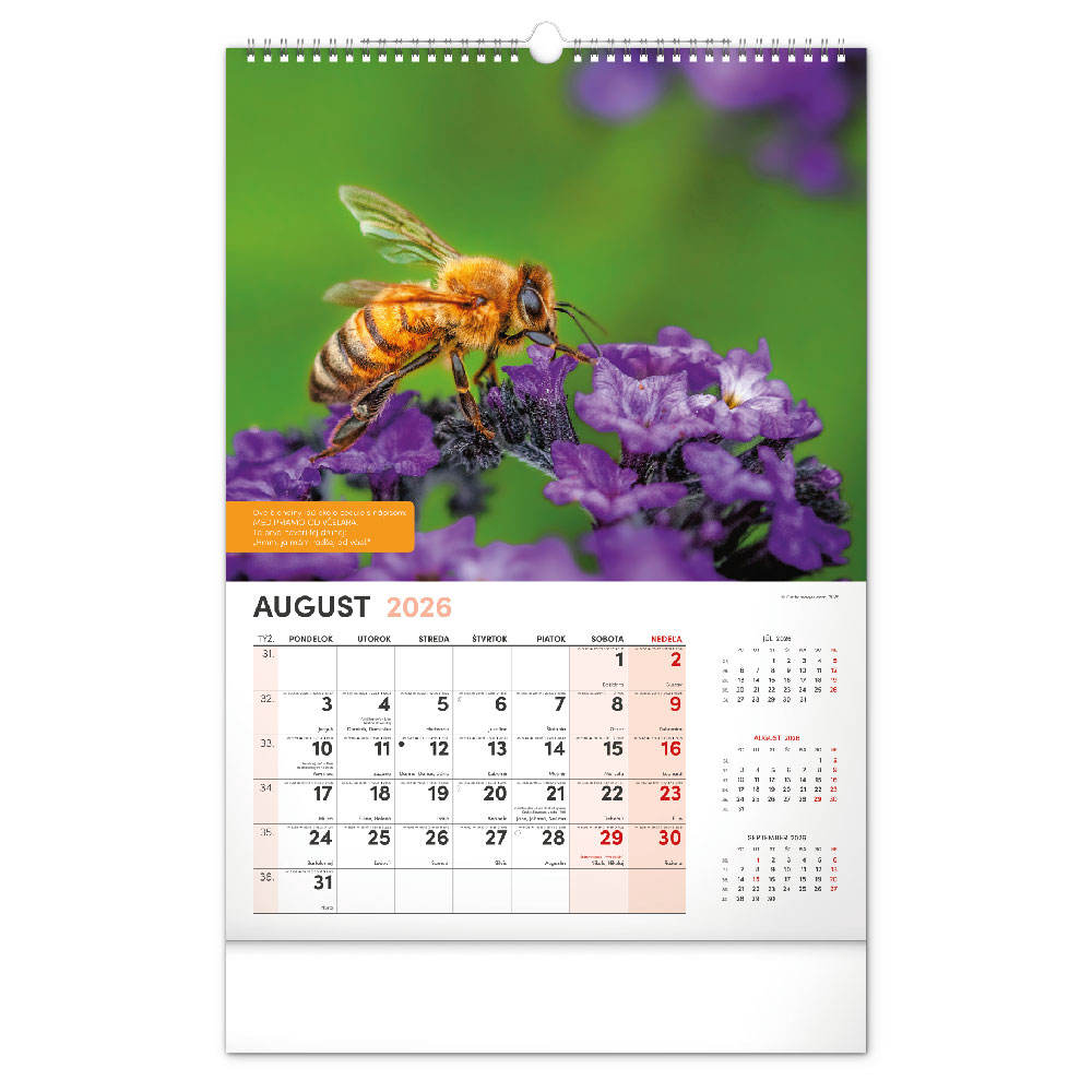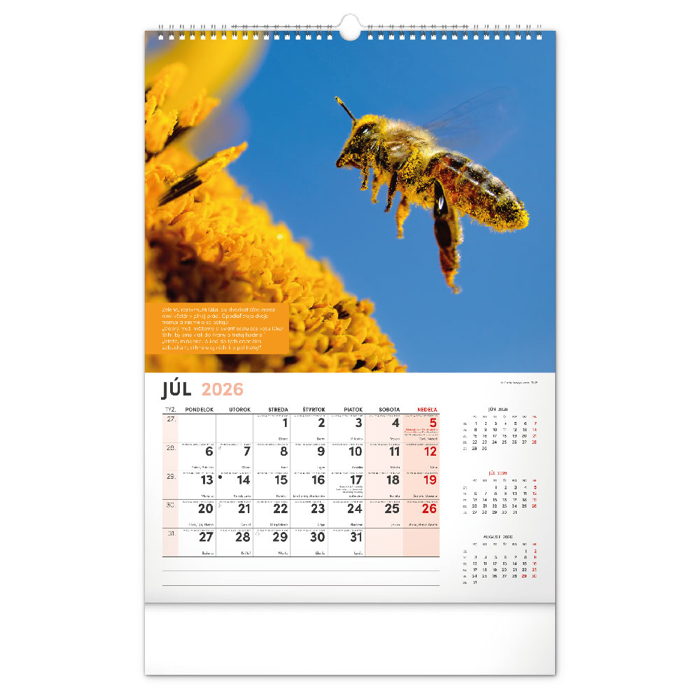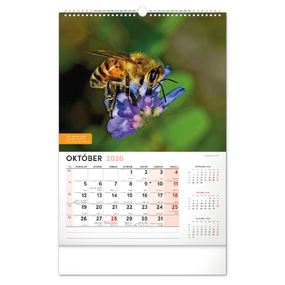 Rozmer: 33 x 46 cm Kalendárium: slovenské Rozsah kalendára: 14 listov Väzba: dvojitá špirála Plocha pre potlač: 33 x