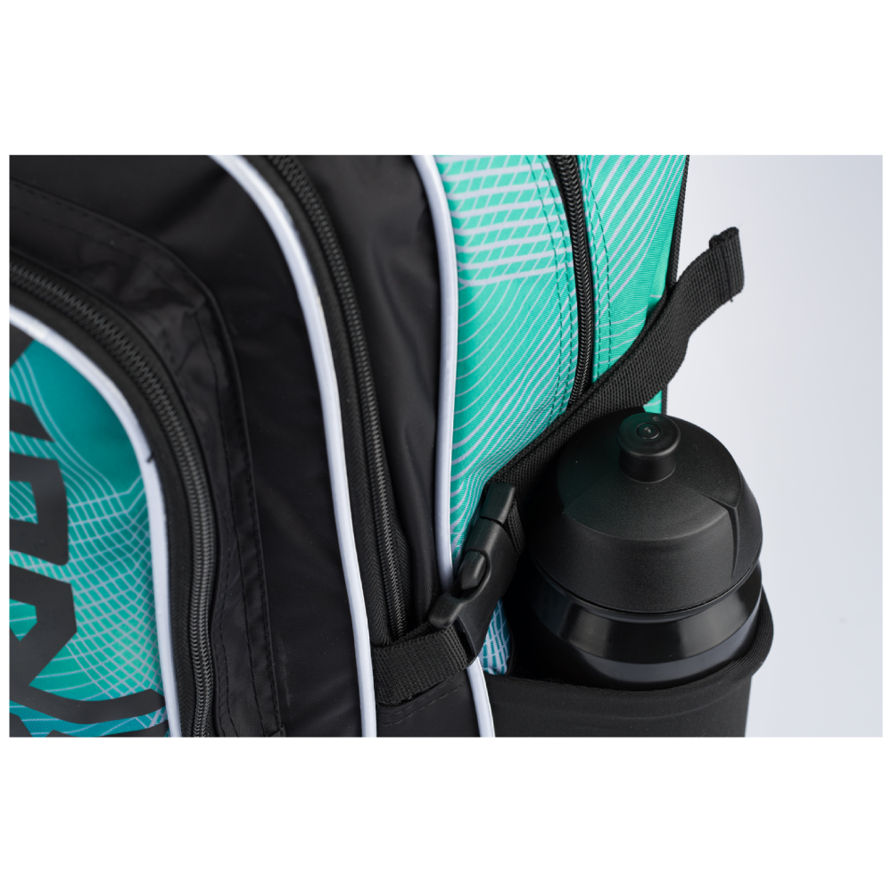 • Boční kapsy z elastického materiálu, které jsou vhodné pro jednu z našich láhví na pití.