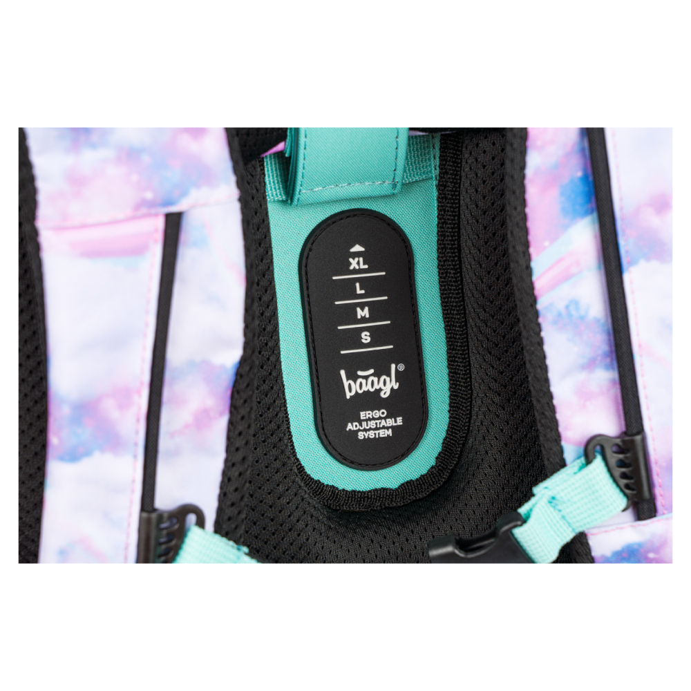 • Posuvný zádový systém BAAGL ADJUSTABLE SYSTEM umožňuje nastavení optimální polohy popruhů vzhledem k výšce dítěte.
