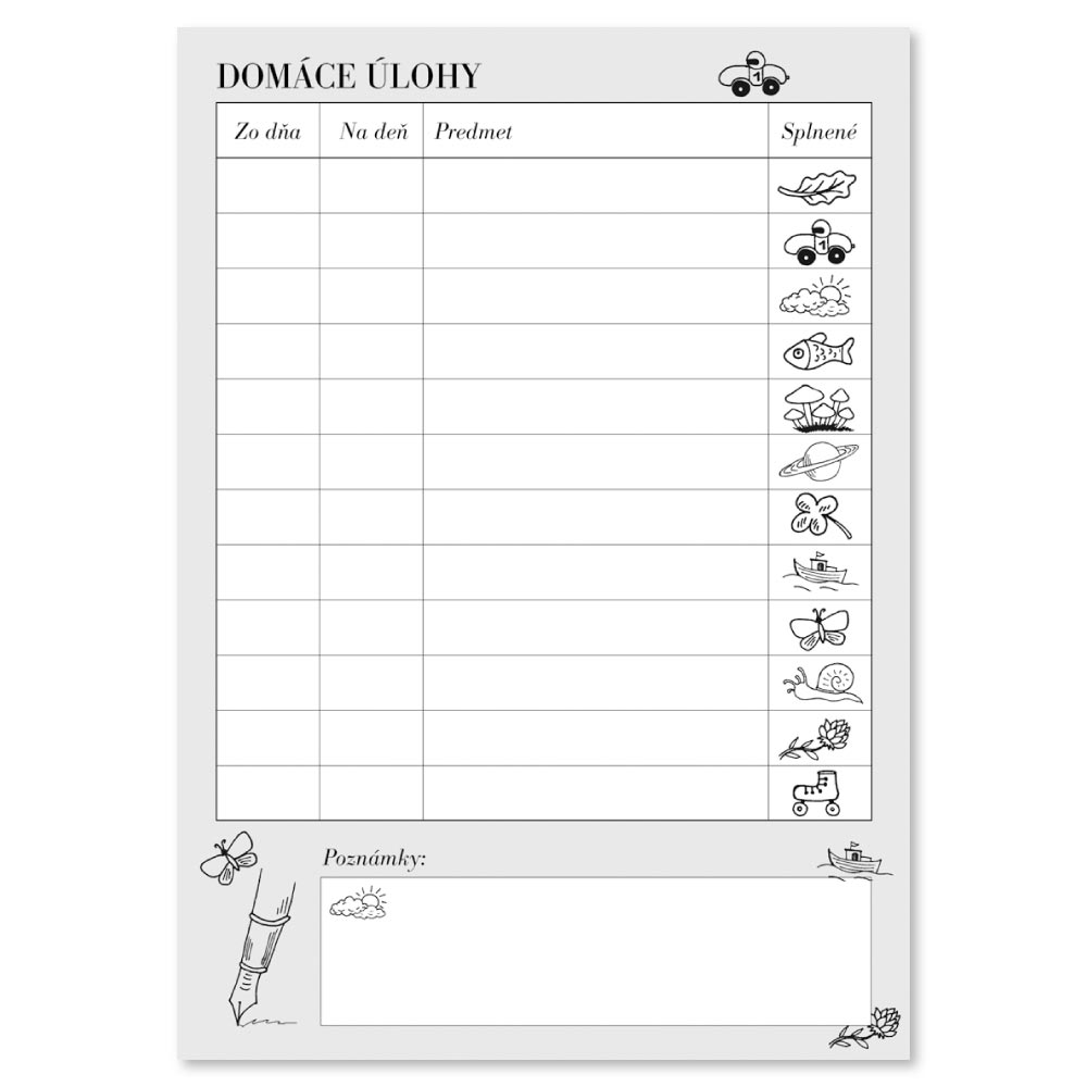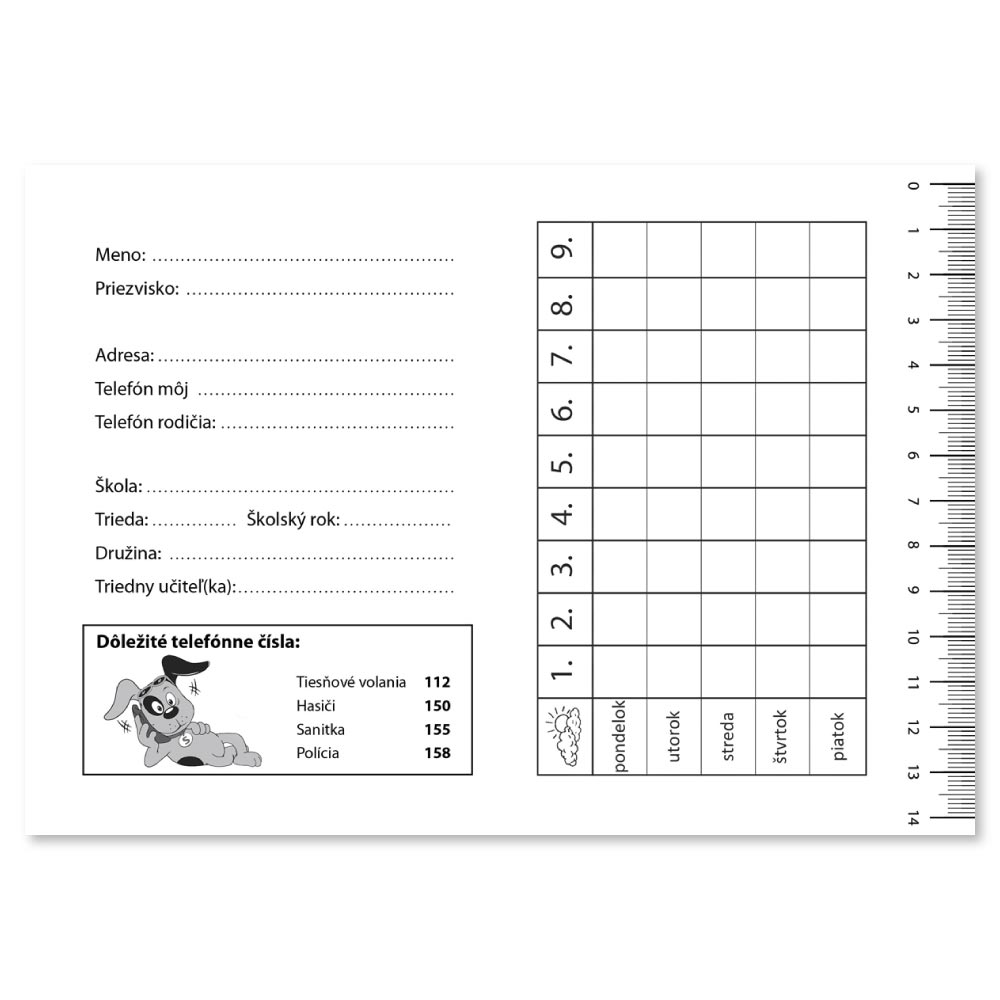 Obsahuje: rozvrh hodin, s možností zapisování úkolů a poznámek