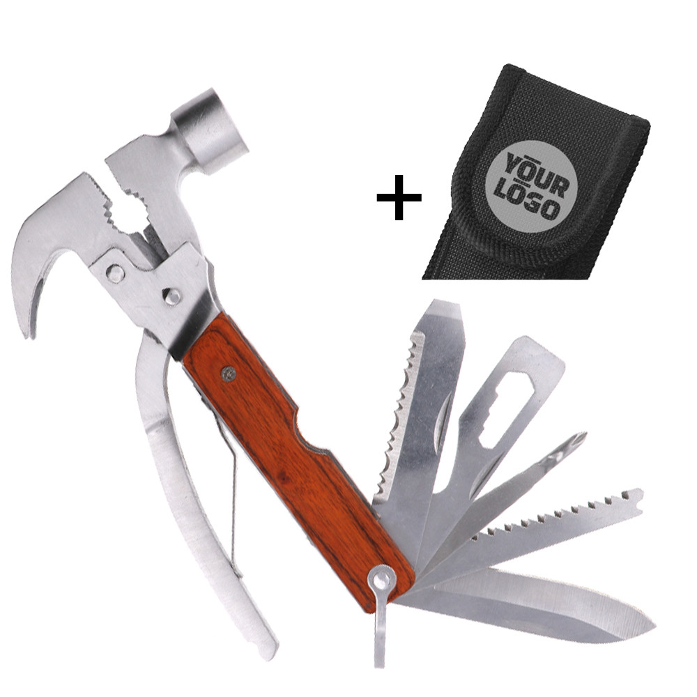 Multifunkční nářadí z nerez oceli a s dřevěným držadlem, 13 funkcí.