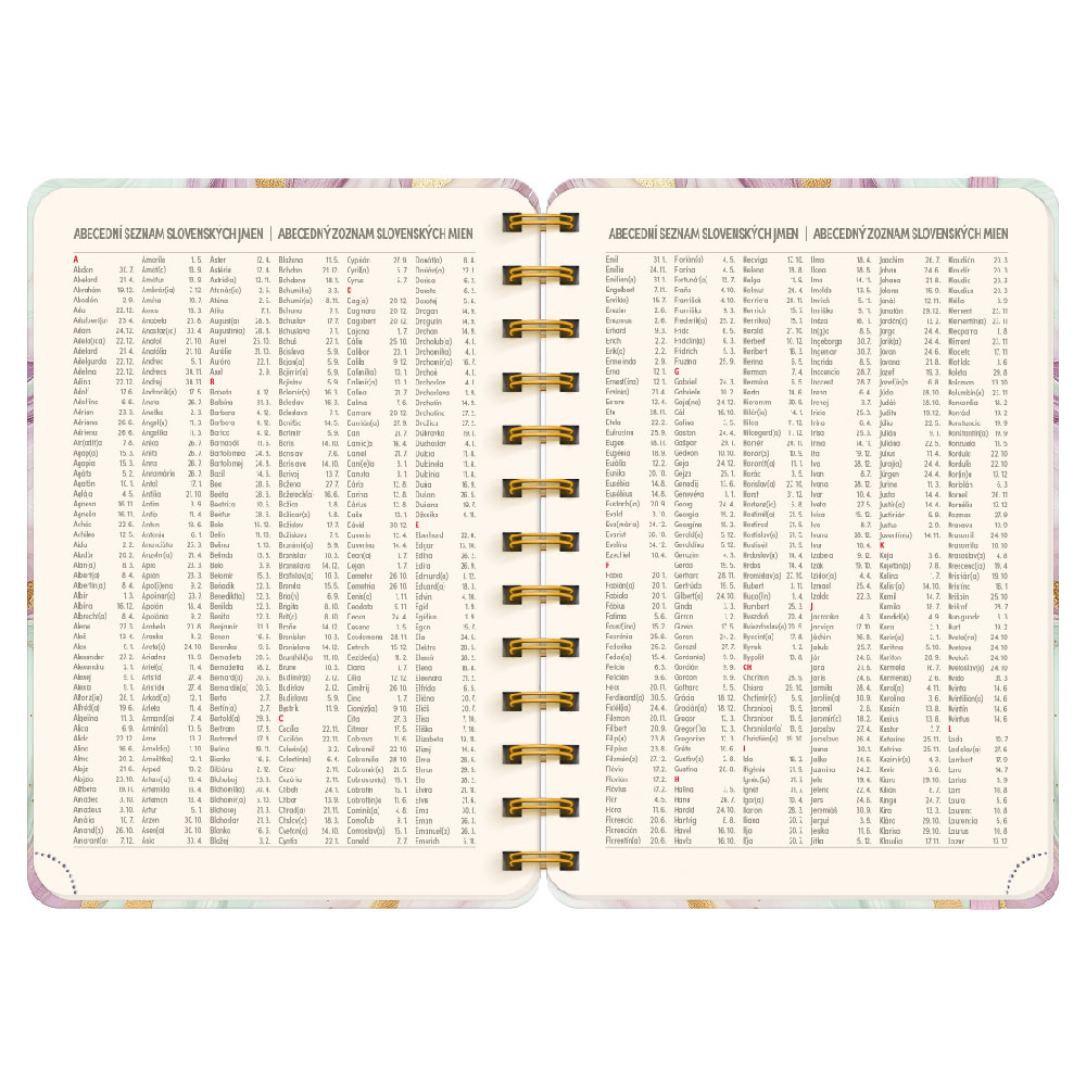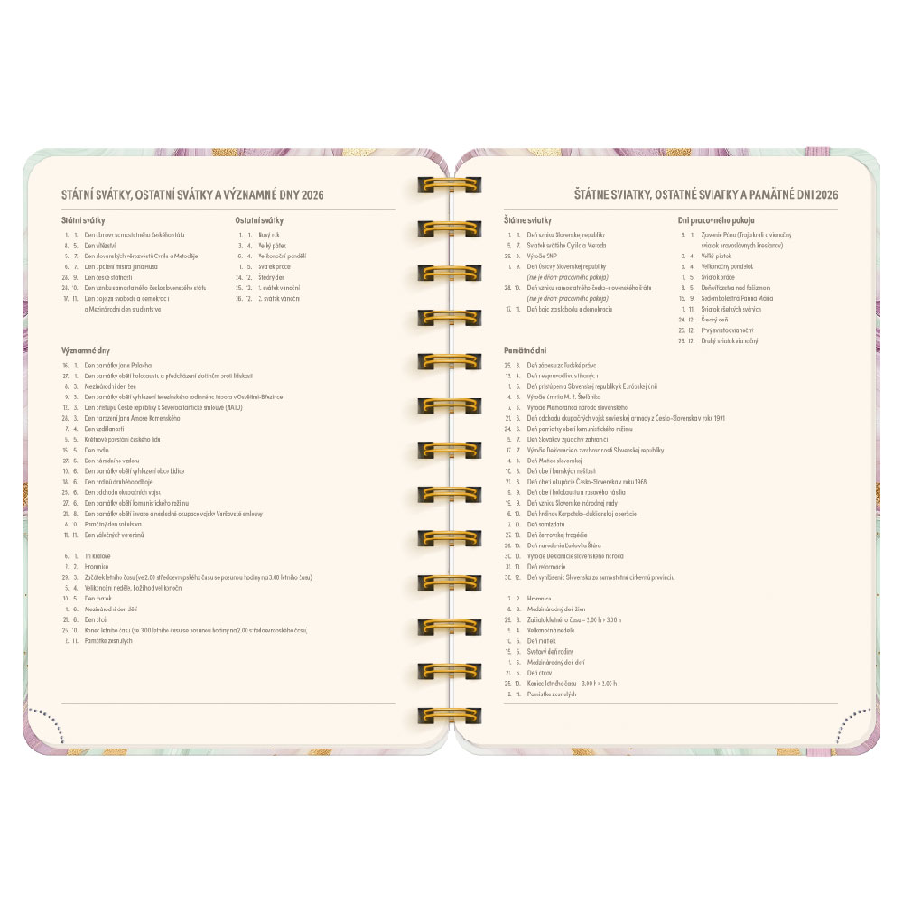Kalendárium: týdenní 18 měsíční 2 jazyčné (CZ, SK)