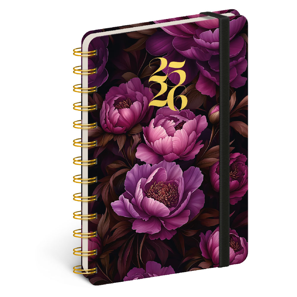 Spiral 18-month diary Petito - Purple flowers 2025/2026