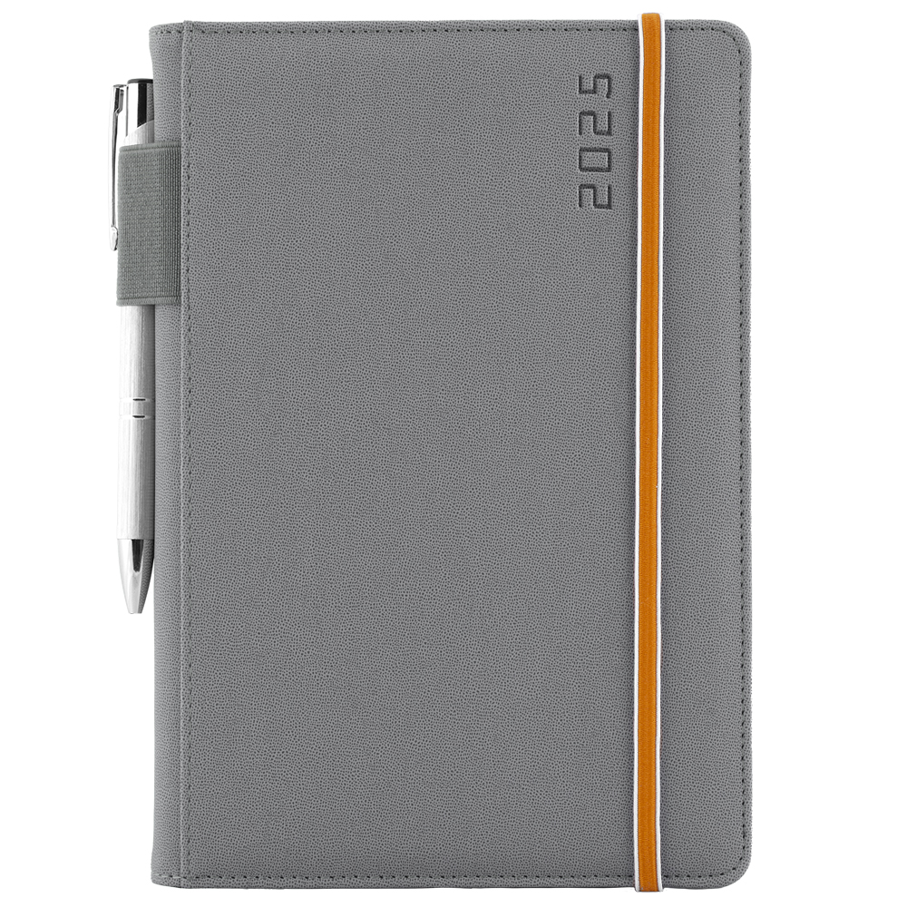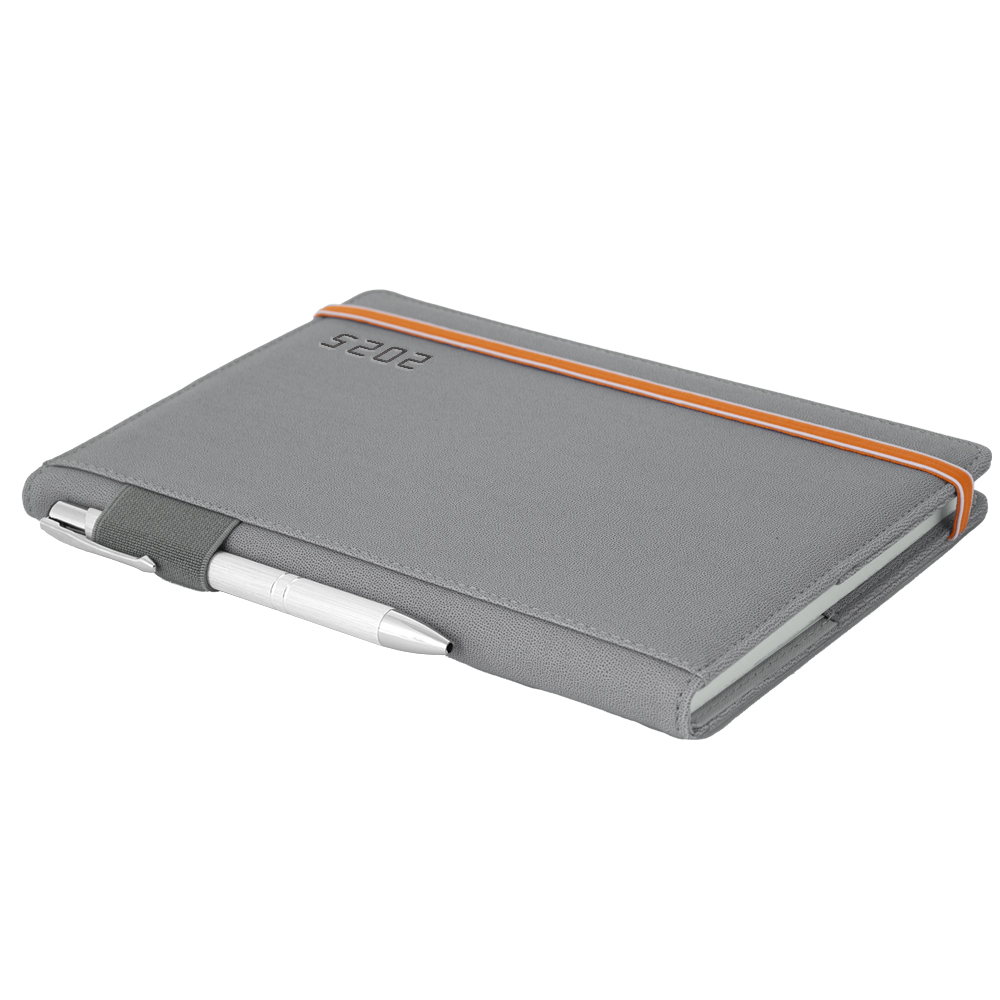 Tagebuch AMOS wöchentlich A5 2025 Tschechisch – Grau/oranges Gummiband