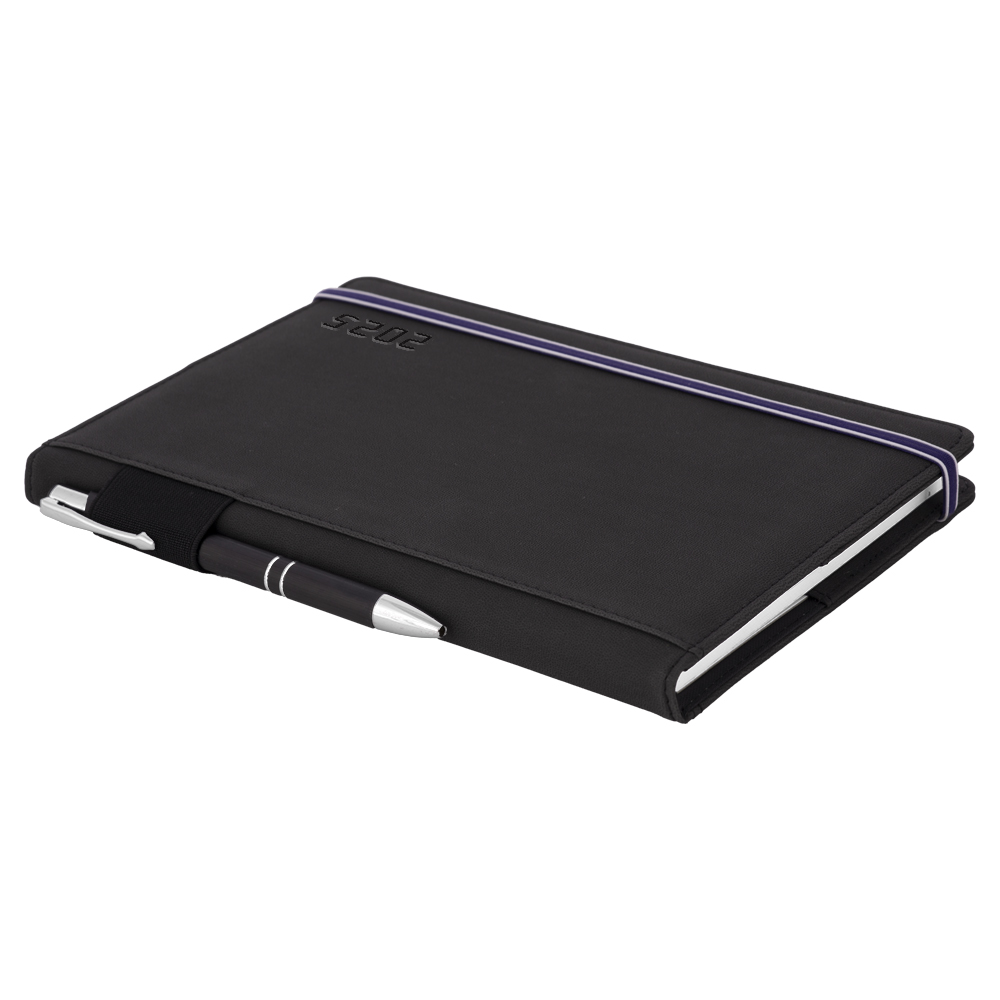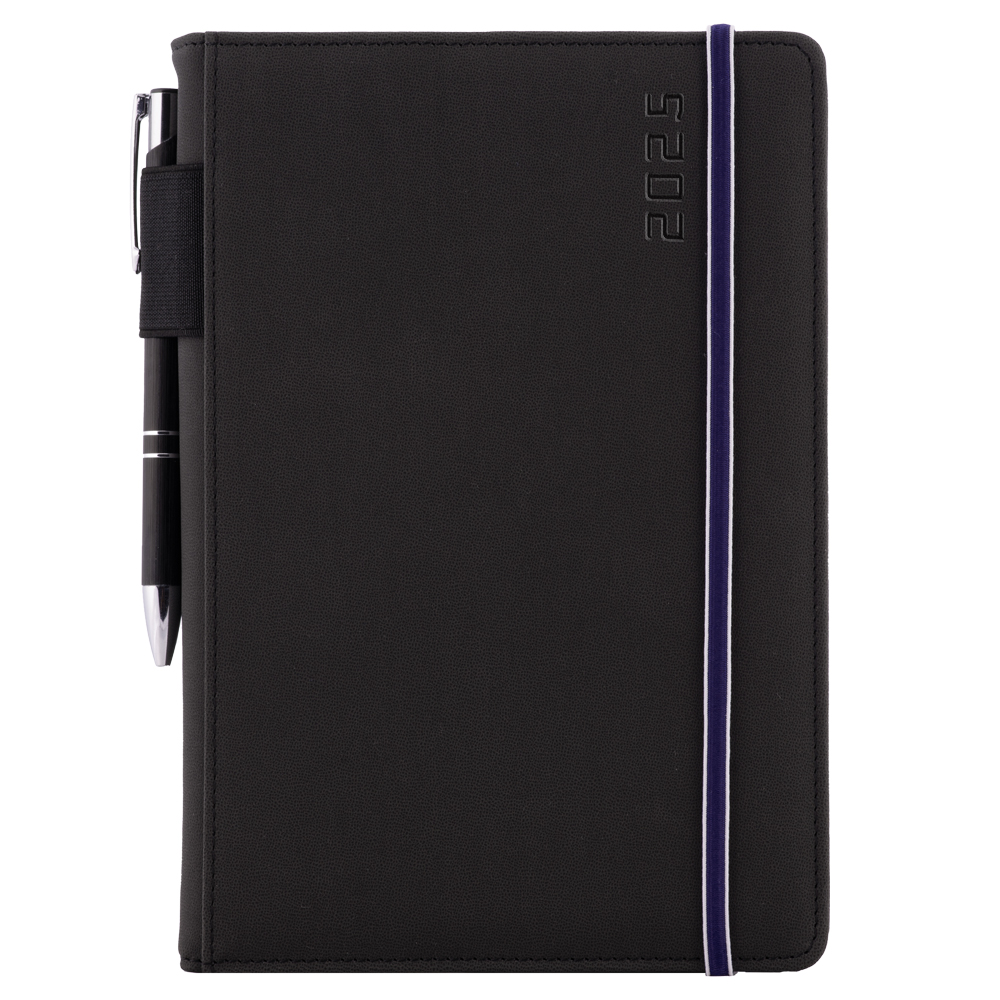 Tagebuch AMOS wöchentlich A5 2025 Tschechisch – Schwarz/blaues Gummiband