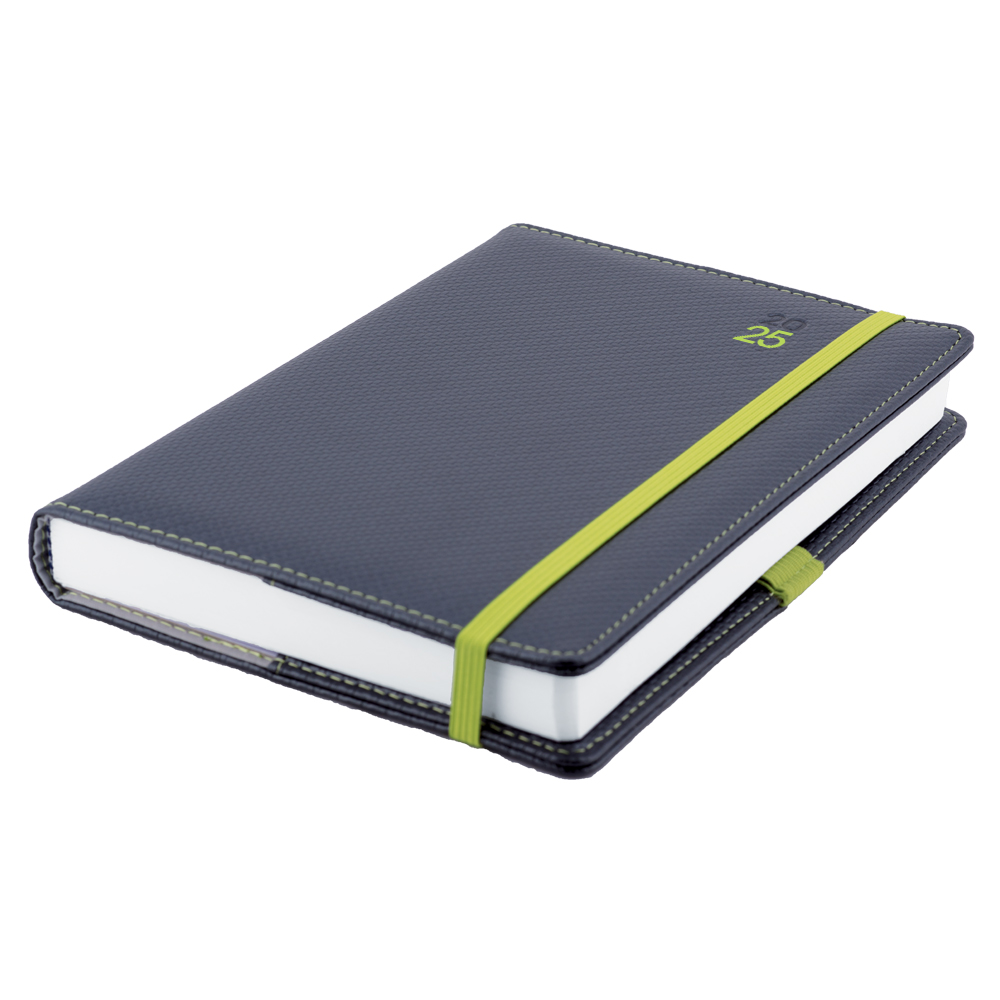 Tagebuch ELASTIC täglich A5 2025 Tschechisch – Graphit/grüner Gummi