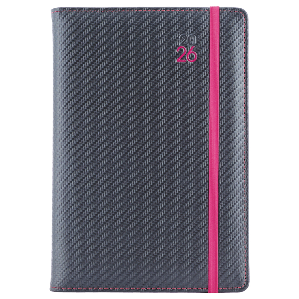 Tagebuch ELASTIC täglich A5 2026 Tschechisch – Graphit/magenta Gummi