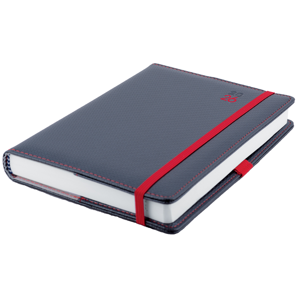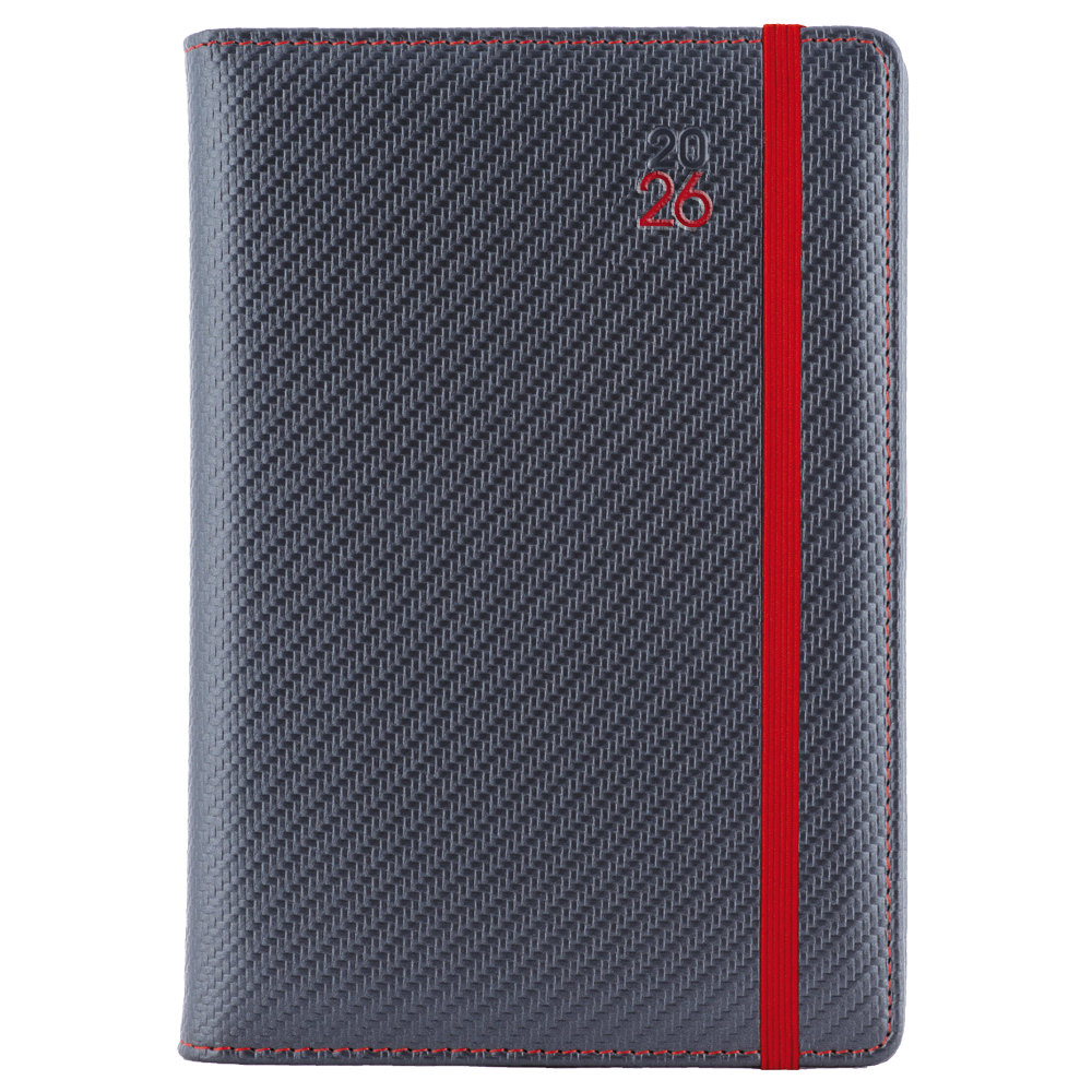 Tagebuch ELASTIC täglich A5 2026 Tschechisch – Graphit/rotes Gummi