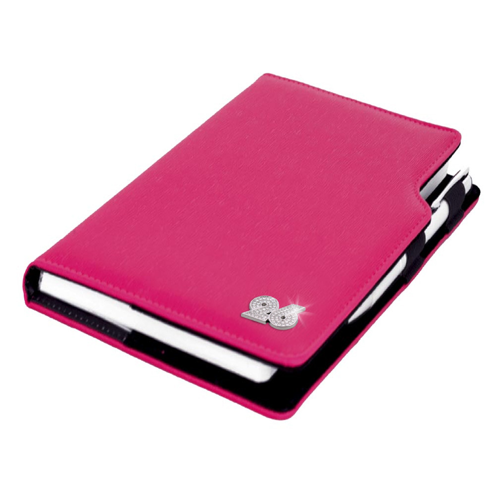 Tagebuch enthält: runde Abreißecken, weißes Lesezeichen und Kuli